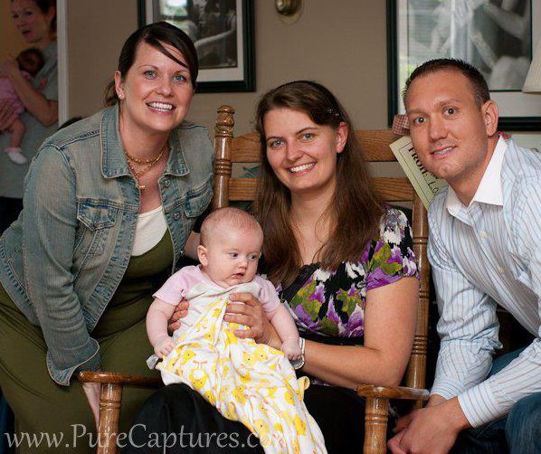 Photo taken May 2012 at the Grand Opening of the original Family Birth and Wellness location on Brentwood Boulevard. L-R: April Loehr, Mary (Ueland at the time) Walsh with baby Shae, Dr Steven Loehr. The rocking chair was a gift to the new birth center from the Loehrs since Mary had been their midwife!
